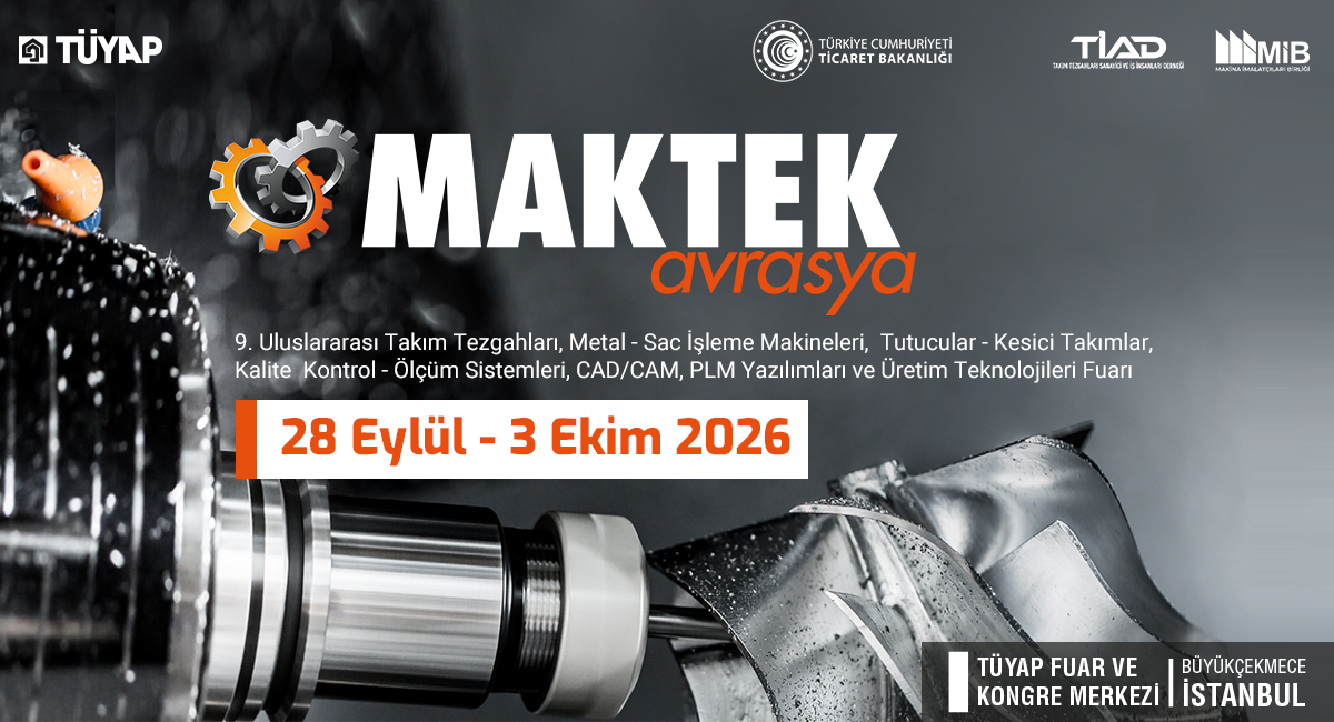 TİAD’ın marka sahibi olduğu “Makine yapan makinelerin fuarı” MAKTEK AVRASYA, uluslararası ölçekte 9’uncu kez 28 Eylül – 3 Ekim 2026 tarihleri arasında, TÜYAP Fuarcılık Grubu’nun işbirliği organizasyonu ve Makina İmalatçıları Birliği’nin desteği ile TÜYAP İstanbul Fuar ve Kongre Merkezi’nde gerçekleşecek. İmalat sanayisinin ve takım tezgahları sektörünün heyecanla beklediği fuar, CNC takım tezgahları, sac-metal işleme ve şekillendirme makineleri, tutucular, kesici takımlar, kalite kontrol ve ölçüm sistemleri, CAD/CAM ve PLM yazılımları, otomasyon sistemleri, endüstriyel robotlar, eklemeli imalat makineleri, diğer tamamlayıcı makine ve hizmetler ile üretim teknolojilerindeki en yeni çözümlere ev sahipliği yapacak.